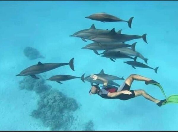 full‑day adventure at sea where nature and excitement meet. Cruise across the sparkling waters of the Red Sea to Dolphin House, a reef area renowned for its playful wild dolphins. Swim and snorkel among vibrant coral gardens and schools of colorful fish, with the chance to encounter dolphins in their natural habitat. Relax on deck, enjoy a freshly prepared lunch, and soak up the sun as you discover one of Egypt’s most magical marine experiences.