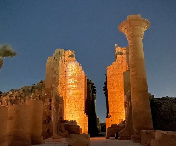 Experience the magic of Luxor Temple as the sun dips below the horizon, bathing the giant statues in golden light. After a romantic sunset tour, stay for the legendary Sound and Light Show, where history comes alive through dramatic narrations and illuminating displays that tell the glorious tales of ancient Thebes.