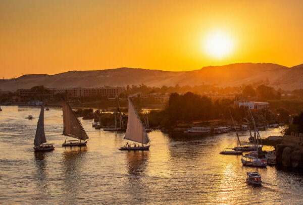 Sail peacefully on a traditional Egyptian felucca during the magical sunset hours on the Nile.
