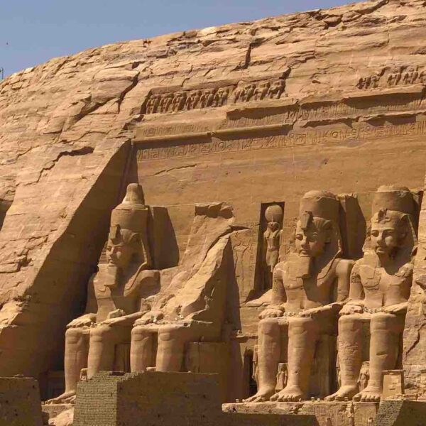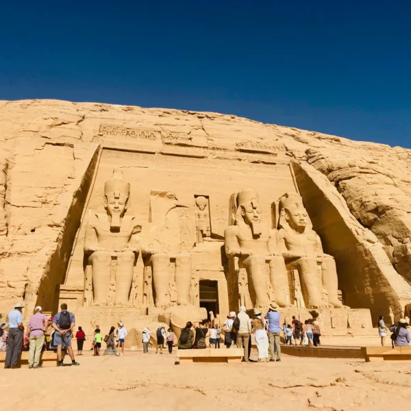 - Drive south through the desert (approx. 3–4 hours) to reach Abu Simbel.