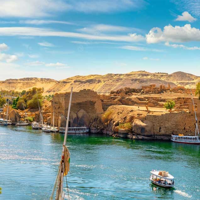 Aswan is a serene city in southern Egypt, famous for its golden sunsets, Nubian culture, and iconic landmarks like Philae Temple and Abu Simbel. With tranquil Nile views, colorful villages, and unforgettable felucca rides, Aswan offers the perfect blend of history, relaxation, and charm.